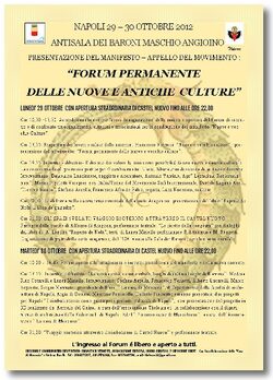 L'appuntamento per la condivisione del manifesto "Forum permanente delle nuove e vecchie culture". è dalle ore 10,00 alle 17 di lunedì 29 e martedì 30 ottobre. I lavori in programma inizieranno alle 17,30.