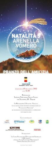 Domenica 23 dicembre alle ore 12.30 presso il Refettorio dell'Istituto Salesiano Sacro Cuore in via Scarlatti n. 29, la Municipalità 5 Arenella -Vomero Mette in tavola il "Pranzo dell'Amicizia 2012."