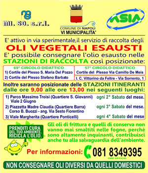 Municipalità 6 - Servizio di raccolta sperimentale oli vegetali esausti