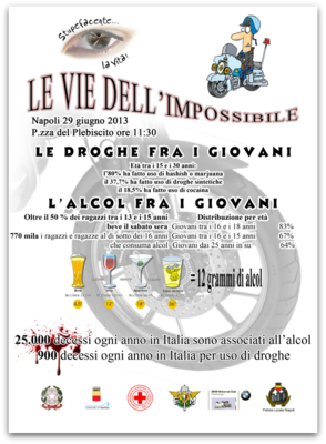 I motociclisti saranno rigorosamente scortati dalle unità radiomobili della Polizia locale ed arriveranno in piazza del Plebiscito dove saranno salutati dal Sindaco di Napoli, dall'Assessore allo Sport & Sanità, dal Vicario del Prefetto, dal Comandante della Polizia Municipale; in piazza del Plebiscito , infatti, saranno allestite delle tende a cura della Croce Rossa italiana e della Federazione Motociclistica Italiana (come da planimetri allegata) che faranno attività di informazione e sensibilizzazione contro l'abuso di alcool e di stupefacenti.
