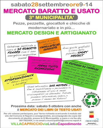 Municipalità 3 - Sabato 28 settembre mercato del baratto e dell'usato