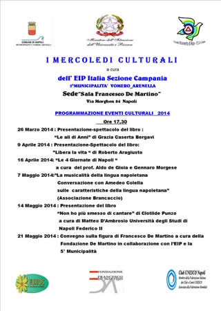 La Municipalità 5 ha organizzato i seguenti incontri nell'ambito del progetto:"I Mercoledì Culturali".