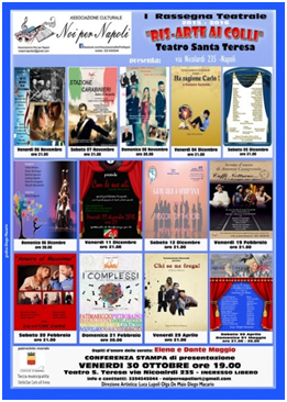 Reduce dai precedenti eventi organizzati con successo, nell'ambito del Forum Universale delle Culture 2014/15 tra cui le giornate "Finestre sulle stelle" (Ottobre - Novembre 2014) omaggiando le figure di "Totò" ed il tenore "Enrico Caruso", con lo spettacolo "Enrico Caruso la Voce dei due Mondi"andato in scena al Teatro Politeama,Teatro Totò, e Maschio Angioino per la Rassegna Estate a Napoli 2015 l'associazione "Noi per Napoli" del tenore Luca Lupoli ed il soprano Olga De Maio, artisti del San Carlo, in collaborazione con l'attore e organizzatore Diego Macario, presenta la I Rassegna Teatrale "Ris-Arte ai Colli" che avrà inizio a partire dal 06 Novembre al 01 Maggio 2016 e sarà presentata presso il Teatro Santa Teresa via Nicolardi il giorno venerdì 30 ottobre 2015 ore 19.00.