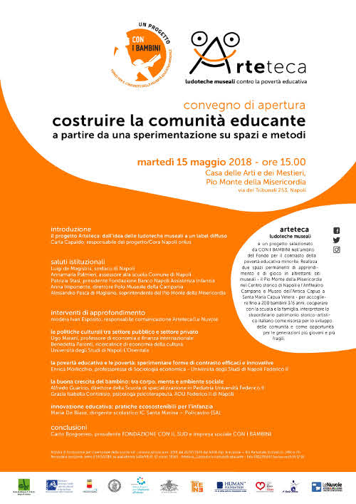 “ Arteteca” è un progetto in partenariato con il Comune di Napoli – Assessorato alla Scuola e all'Istruzione, selezionato da "Con i bambini" - soggetto attuatore del "Fondo per il contrasto della Povertà Educativa Minorile" interamente partecipata dalla Fondazione "Con il Sud" – nell'ambito del Bando Prima Infanzia 0-6.