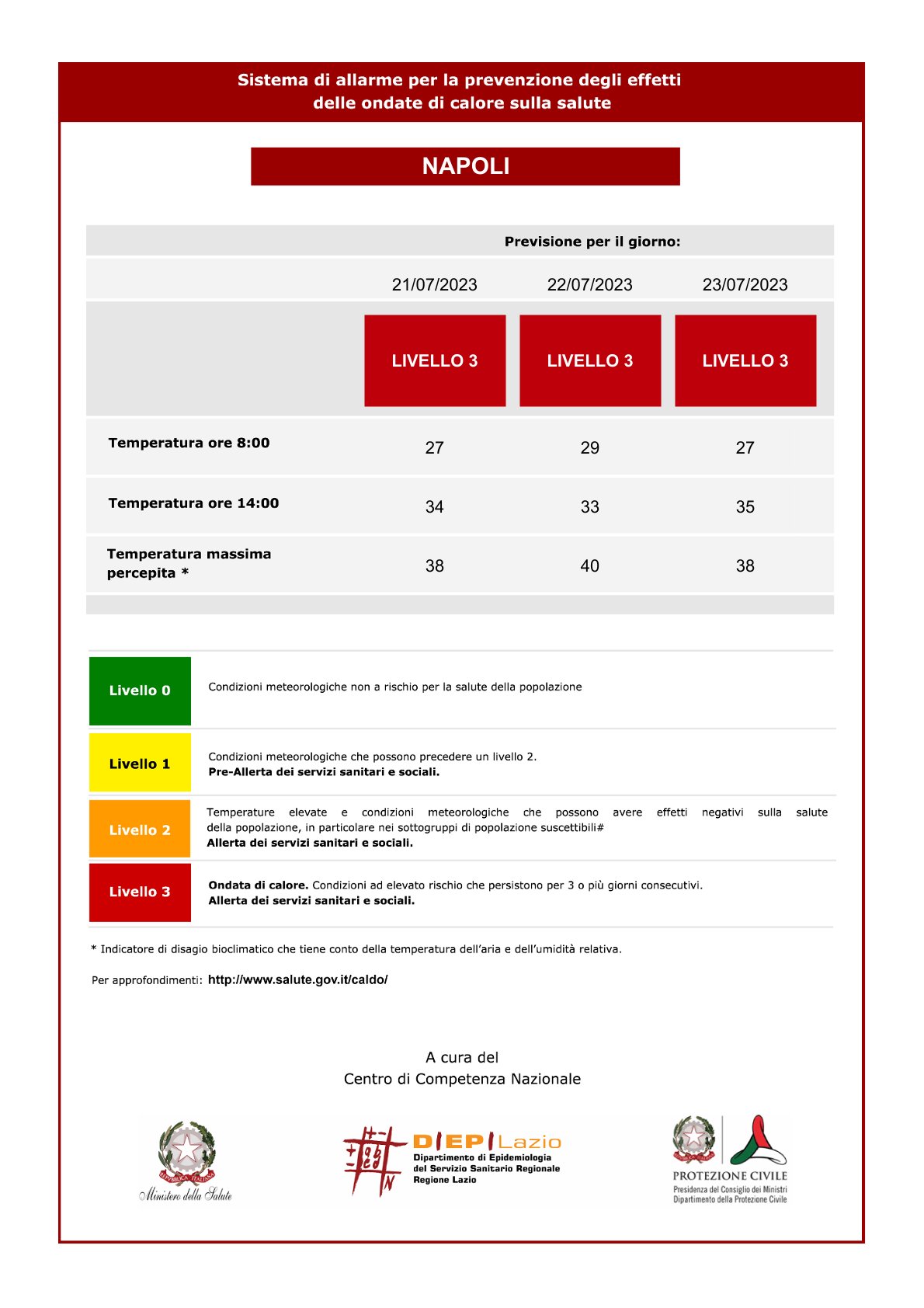 Allerta meteo - Avviso ondate di calore - bollettino del 21/07/2023