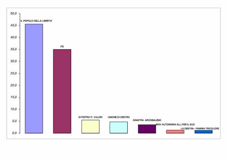 La sinistra radicale non è più presente in Parlamento. Vince la coalizione guidata da Silvio Berlusconi. A Napoli, alle consultazioni per il rinnovo dei rappresentanti a Palazzo Madama, il centro destra con il 46,9% dei voti conquista la maggioranza relativa. Anche il Partito Democratico e Italia dei Valori aumentano la loro forza elettorale, in valore assoluto (+10.178, +9.999) e in punti percentuali (+5,4%, +2,5%), ma nonostante questa crescita i partiti che sostengono Walter Veltroni complessivamente presentano 29.258 voti in meno rispetto alla coalizione avversa.